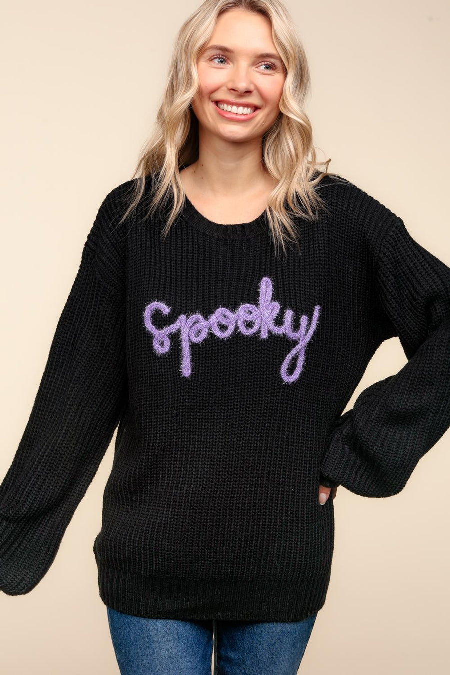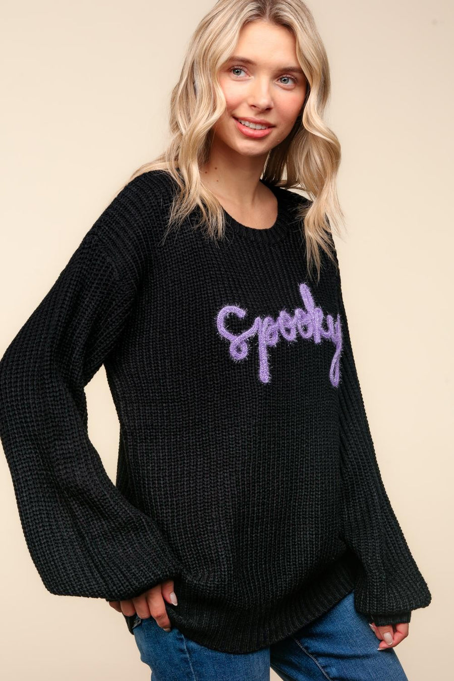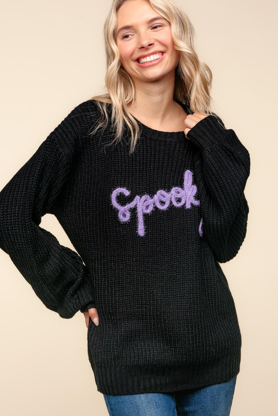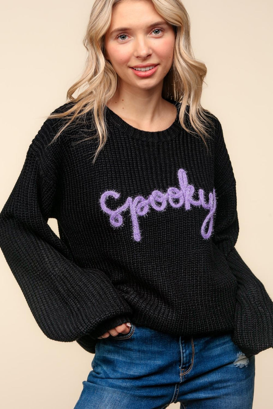 Spooky Pop Up Letter Pullover Sweater