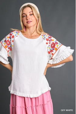 Umgee Embroidered Sleeve Blouse