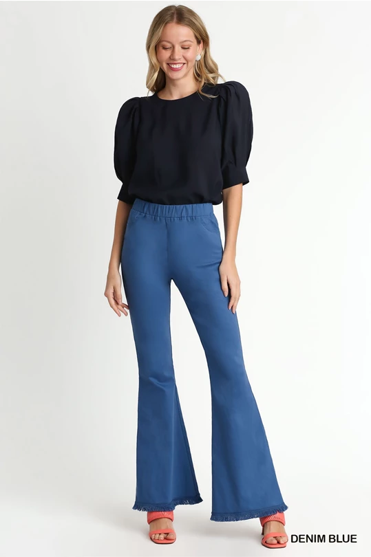 Stretch Wide Flare Leg Pant with Elastic Waist